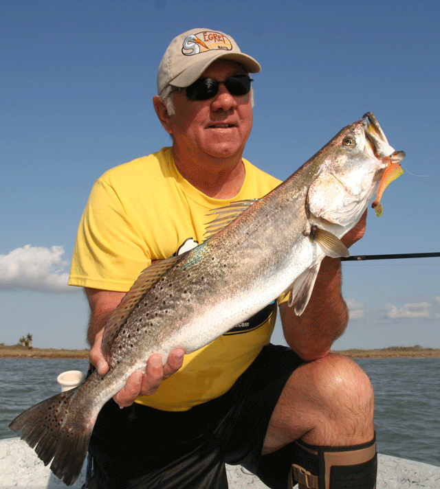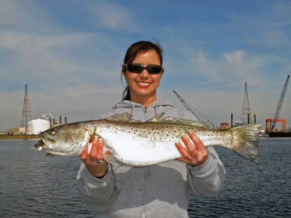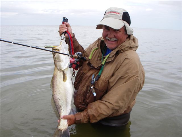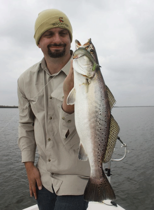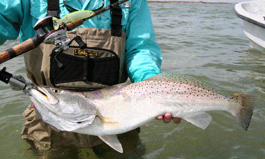 8lb Trout at Galveston Bay Wedgetail Mullet |
